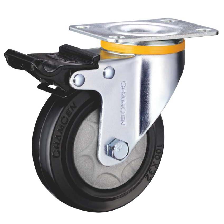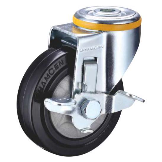 B5-4寸絲杆雙刹黑(hēi)色高(gāo)彈力天然(rán)橡膠(jiāo)輪