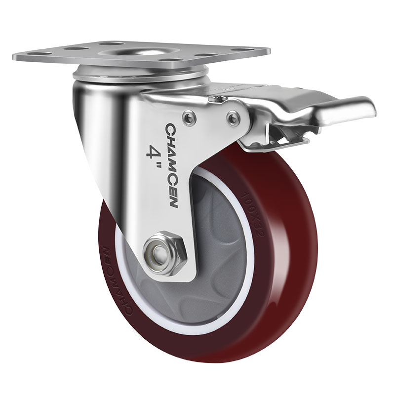 BB2-4寸不鏽鋼雙刹棗紅色(sè)聚氨酯輪