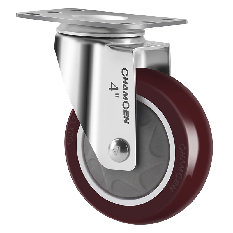 BB2-5寸不鏽鋼活動棗紅色(sè)聚氨酯輪