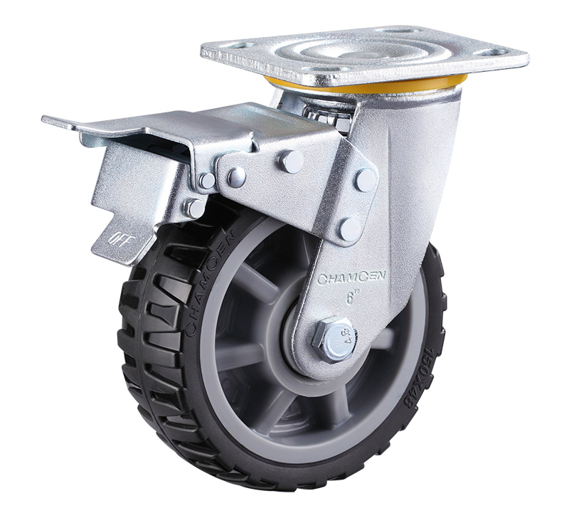 C14-6寸平底邊刹黑色防滑聚氨酯(PU)輪
