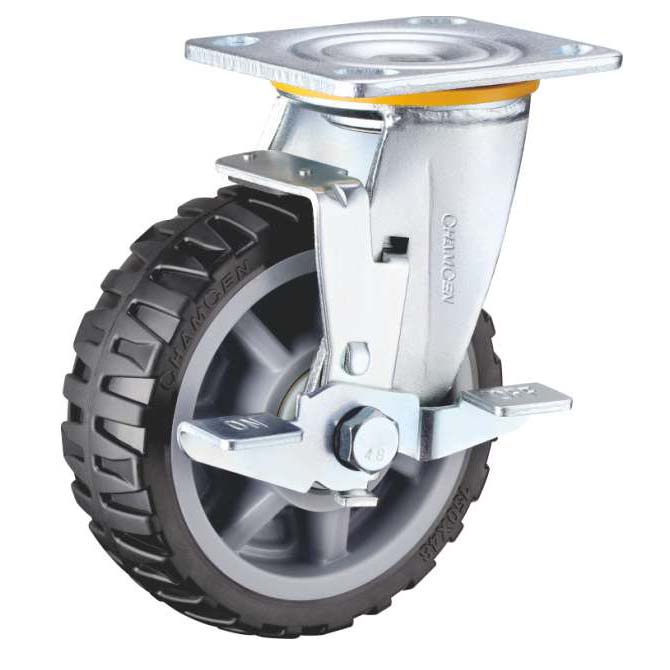 C14-8寸平底邊刹黑色(sè)防滑聚氨酯(PU)輪