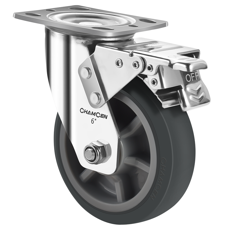 BC3-6寸不鏽鋼雙刹灰色人(rén)造(zào)橡膠輪(lún)