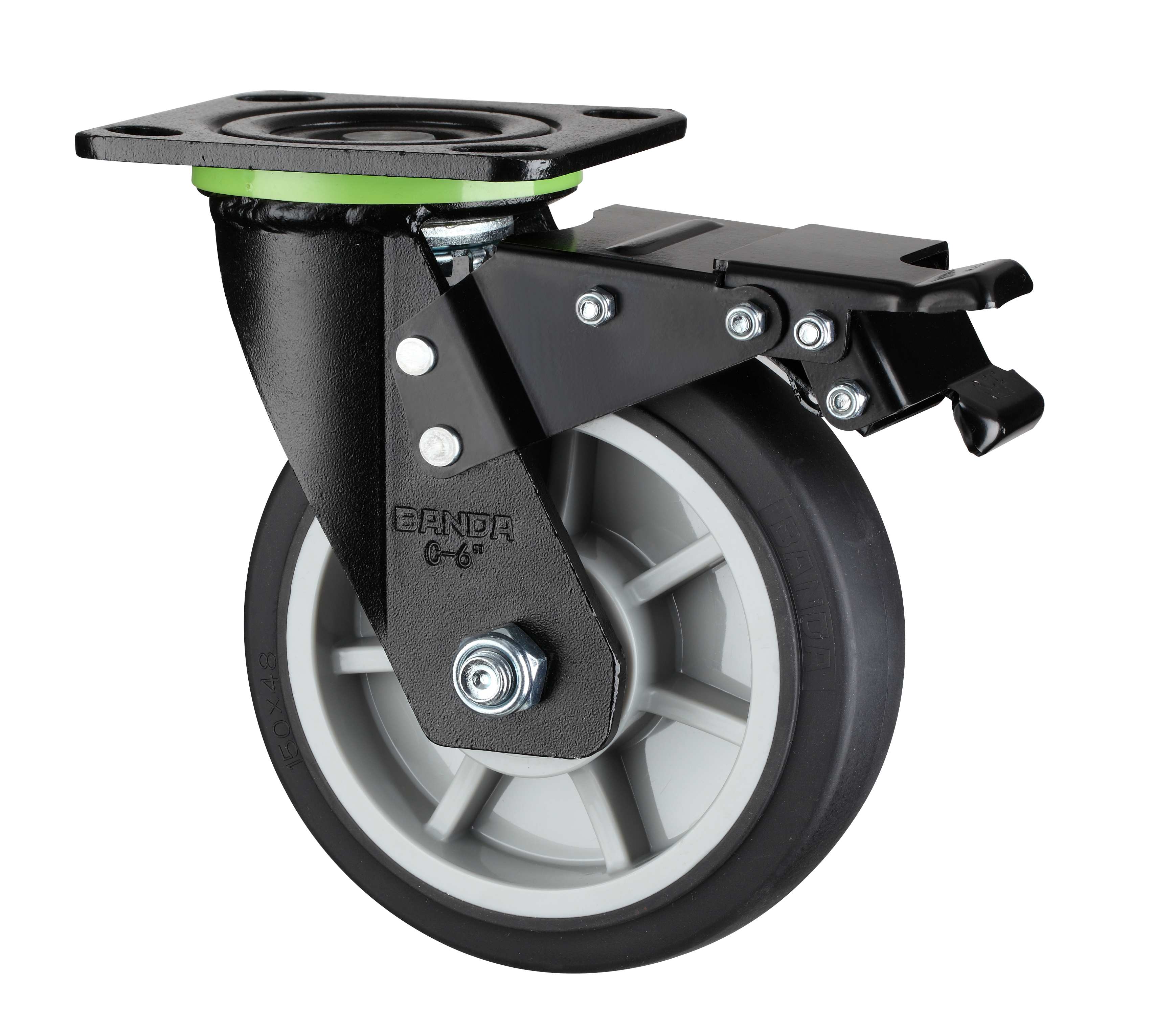 BANDA-C3-6寸重型平(píng)底五金雙刹黑色TPR輪